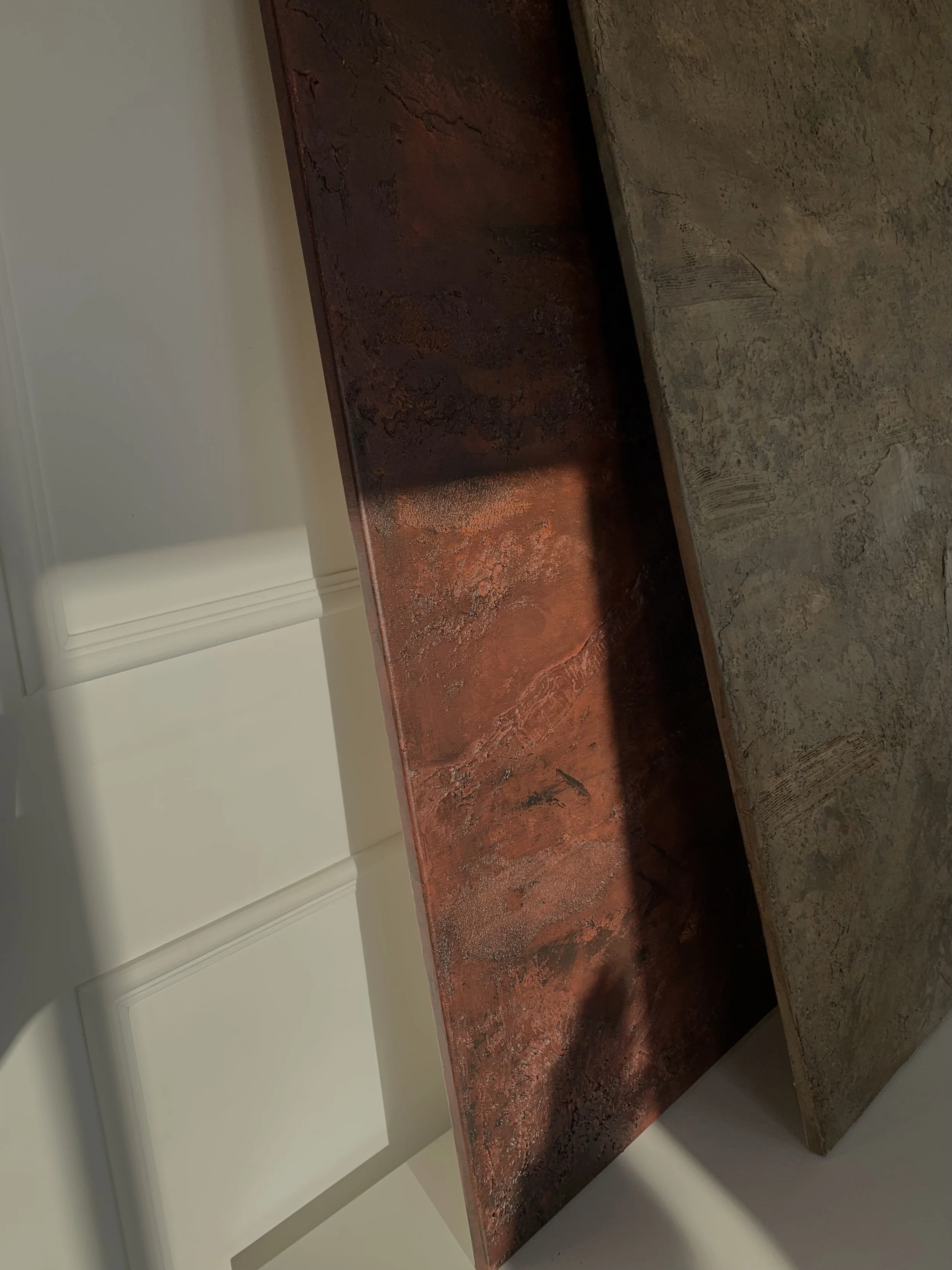 Mi trabajo explora la relación entre materia, luz y silencio visual. A través de superficies texturizadas y una paleta cromática contenida, investigo cómo la materia puede transmitir emoción sin recurrir a la figuración.